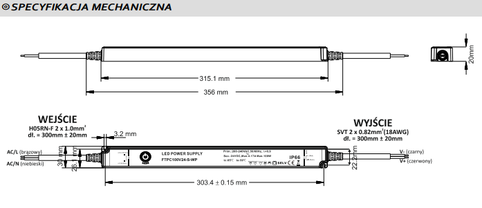 Zasilacz stałonapięciowy LED o mocy 100W, szczelny IP66 FTPC100V-S-WP