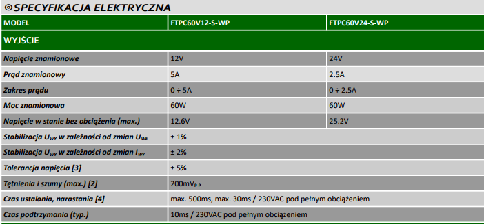 Zasilacz stałonapięciowy LED o mocy 60W, szczelny IP66 FTPC60V-S-WP